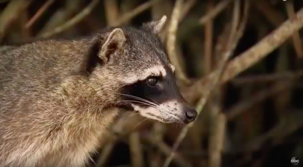 The camera cuts away from Clare to focus on a raccoon that has emerged from a dense tangle of mangroves by the beach. It stares intently in Clare’s direction, listening. The raccoon’s nose gently quivers, scenting something. “I don’t want this,” Clare sighs. “I just wanna have fun!”