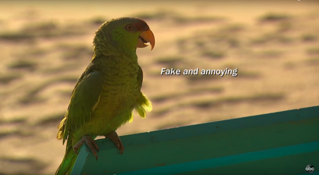 The animals of Bachelor in Paradise intrude into a very different realm from the scripted-and-rehearsed world of the theater. There is not supposed to be any kind of established plot on reality television—no preconceived drama an animal could interrupt. But the delightful surprise of the cats, parrots, frogs and dogs that frequently crop up on Bachelor in Paradise is the way they force a sudden recognition that there is a script to interrupt—or at least of series of conventions structuring the stories we tell about falling in love, conventions that we expect to be reaffirmed on our favorite romantic reality shows.