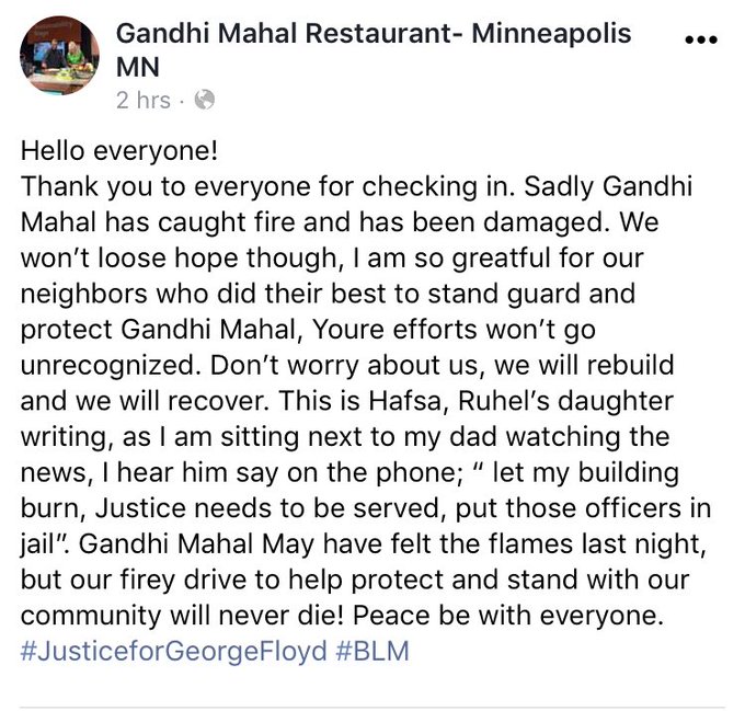 When the Covid-19 pandemic hits, I move my family out to the suburbs, where I continue to do the crossword (now on my iPad, still flawlessly but no ink). I read about the murder of George Floyd in Minneapolis and the protests that erupt in the wake. I read about the Third Precinct “set ablaze” as the Times puts it. And, on May 29th, a Friday, I read about the Bangladeshi-American family whose restaurant near the precinct was also, unintentionally, set ablaze. “Let my building burn,” said the owner, Ruhel Islam, as he watched the news. “Justice needs to be served, put those officers in jail.” I realize as I’m reading that I have no idea what Islam felt in that moment. I can’t begin to guess what was in his head or in his heart. All I know is that, with those words, “Let my building burn,” he refused to be a solution.