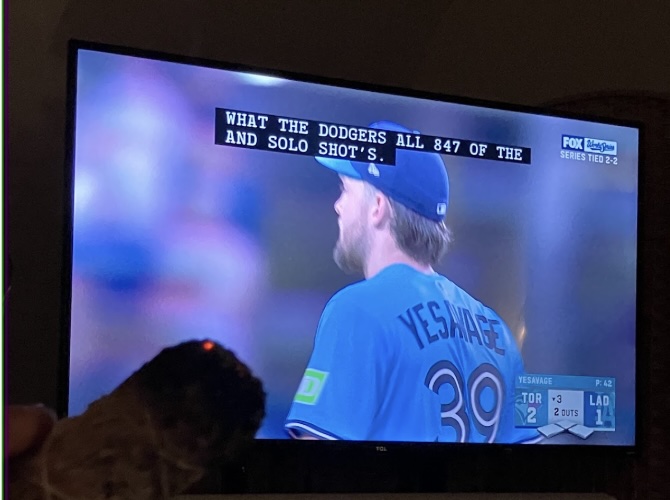 After getting out of a jam in the 6th, Yoshi left the game for our bullpen to finish, leaving me scant hope for a game seven. I missed the dawgs of last year’s pen, the true MVPs, when we had no starting pitching to speak of other than a less polished Yoshi, and the hot L.A.-born himbeaux, Jack Flaherty, borrowed for a year from the Detroit Tigers. Throughout G6, Miggy Ro’made a couple of spectacular defensive plays at second base, including a barehander to first in the bottom of the 7th to keep the Jays’ rolling offense at bay.