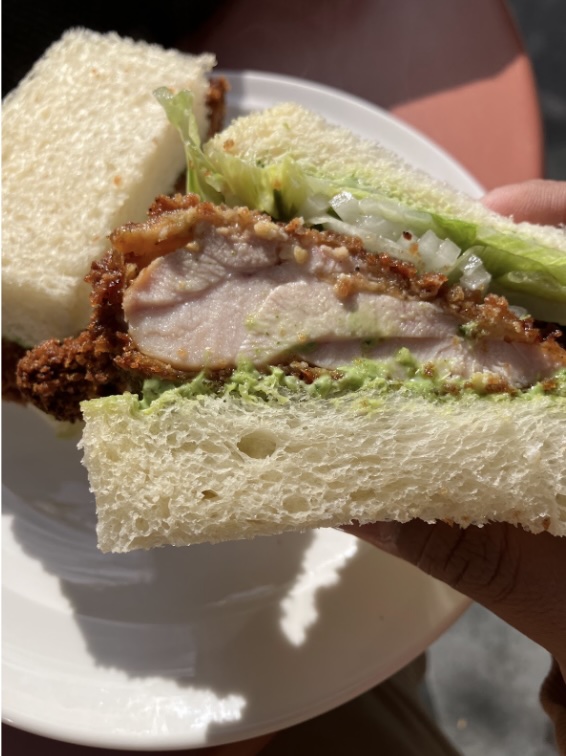 To spiritually realign myself before G7, I walked north to a bakery that has, begrudgingly, earned my respect. The day, blustery and sunny in equal measure, seemed to demand the soothing balm of a fifteen-dollar fried chicken sandwich from a Frenchman who decided, in defiance of his stern Taiwanese mother-in-law, to specialize in Asian baked goods. They had just launched their cold-weather replacement for their tomato sando, and I include this work of simple genius below, partly to make you jealous and hungry, my kind reader, but also to index what was probably the best part of an otherwise extremely sad day.
