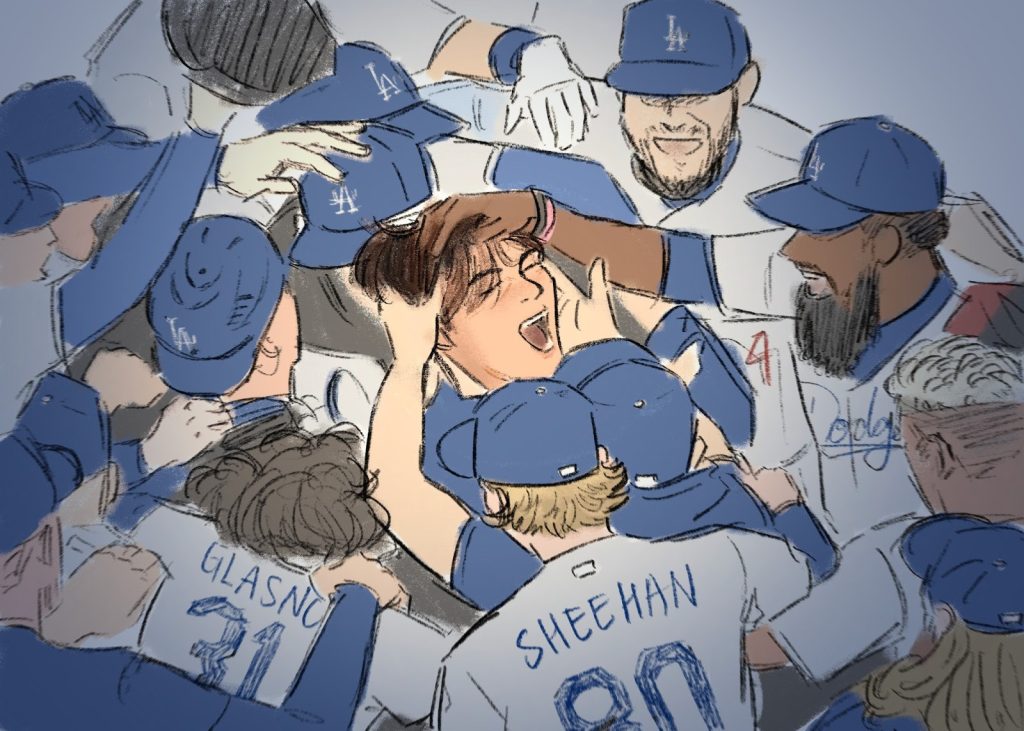 The Blue Jays’ catcher, Alejandro Kirk clocked Tyler Glasnow with a three run homer in the top of the 4th, flipping the game upside down as the sports announcers like to say. It was then that Chelsea, a diehard Latina Dodgers fan, and I fully converted our group chat for Speedy and Amelia into a Dodgers anxiety thread. I changed my clothes back into my recently laundered lucky Dodgers shirt (featuring the 2024 World Series championship trophy), and stuck to my neurotic routine of not watching our pitching halves each inning. I also convinced myself that vigorous texting with the cat thread and other friends like Oliver Wang should be added to my many superstitious rituals.