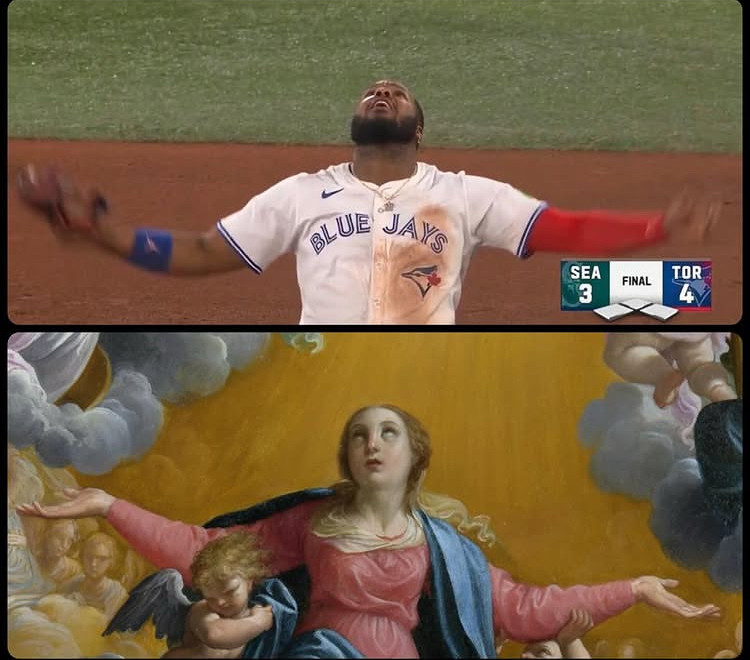 AdL: The first of November began with the following New Yorker interaction: a young cashier and I bickered at the GMC while I was picking up Vitamin B12 and D, and when I dared speculate that the Jays might have a real shot at this (which, let’s be real, they were all around the better team). He bellowed, “BUT HAVE YOU HEARD OF SHOHEI OHTANI?” Yes, kid, I hm and judging from his hat, I realized that he was a salty Yankees fan, still incredulous we’d beaten his team. But he did teach me a valuable lesson. The key to loving a baseball team is to drown oneself in delusions of the future. The Yankee variant of this delulu, though, comes down to some good ol’ Appeal To History, my logical fallacy of choice, and that their team would always have a chance at winning because, well, they have the most World Series wins out of any team in history.