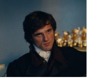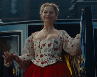 Here, we begin to understand that for Catherine, all the plaiting and pinning involved in her new hairstyles is a mark of erotic suppression. She is not, after all, particularly attracted to her new husband for anything other than his wealth. But for Isabella, it’s something quite different. Isabella’s obsession with ribbons is introduced as a bit of a joke—a way to make the character seem infantile and superficial. And in her enthusiasm for ordering new dresses for Catherine and styling her hair, we do sense that Isabella largely sees Catherine as a new way to play with the dolls and dollhouses that have preoccupied her oddly extended childhood. (Several critics have astutely linked this doll-like styling to Robbie’s recent role as Barbie.)