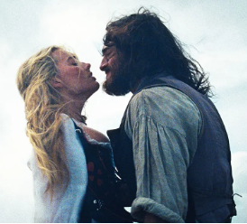 But Isabella’s play isn’t entirely childish; it shades into erotic obsession—the hair-braiding and outfit-planning a sly manifestation of the kind of bondage and control that so excites her later in the film. The obsessive impulse begins to come through as copies of Catherine proliferate: not just in doll form, but also as a snowman likeness and in a painted portrait. Her attraction, in turn, becomes clear in the second gift Isabella bestows upon Catherine: a scrapbook album of their “friendship,” featuring an extremely vaginal rose and an extraordinarily phallic pop-up mushroom. Isabella’s later infatuation with Heathcliff also seems at least partially motivated by the express desire to rouse Catherine’s jealousy.